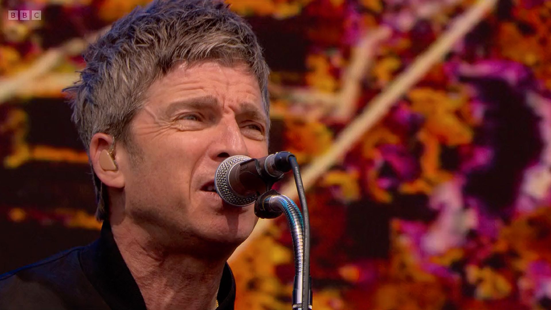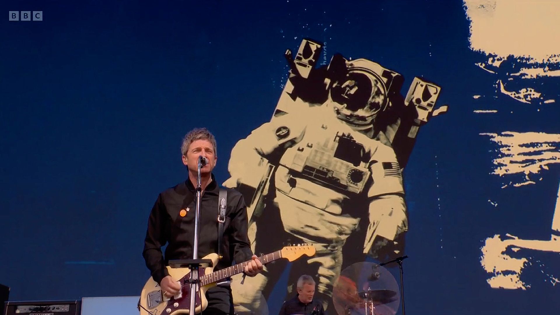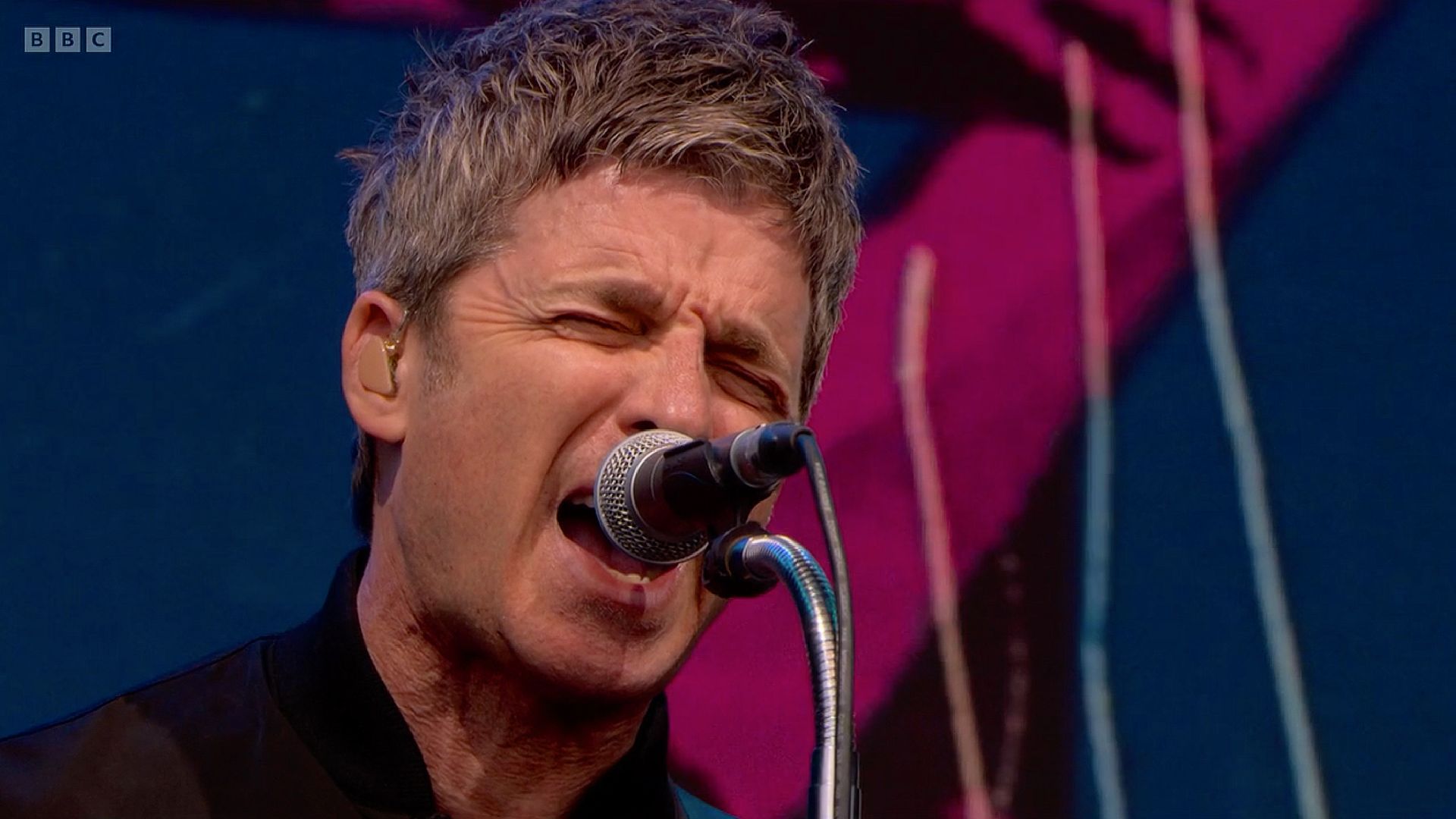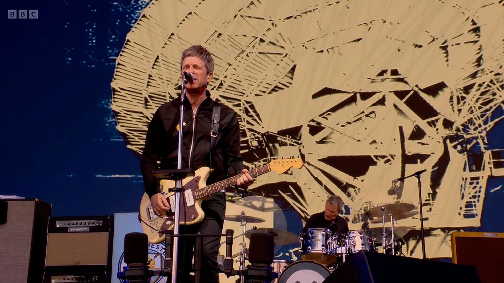 Video screen for Noel Gallagher's High Flying Birds Glastonbury 50th anniversary set on the main pyramid stage. Using a heavy mix of rotoscoped footage, crushed and punked up with analogue mark-marking against ultra punchy neon colours. Projected on Glastonbury's epic 18m x 10m screen. 1 of 8 videos.
