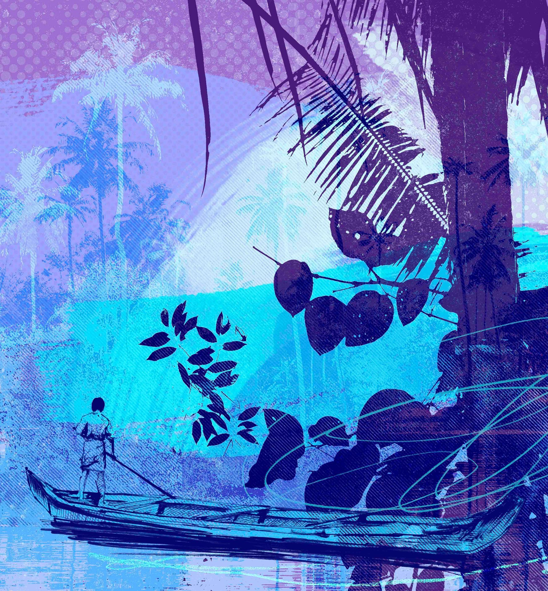 Marian's silk-screen print aesthetic is a true feast for the eyes. With vibrant colour palettes inspired by the natural world and hand-drawn characters, her flair for creating sensitively-observed, multi-layered scenes is a real gift for telling travel and human stories.