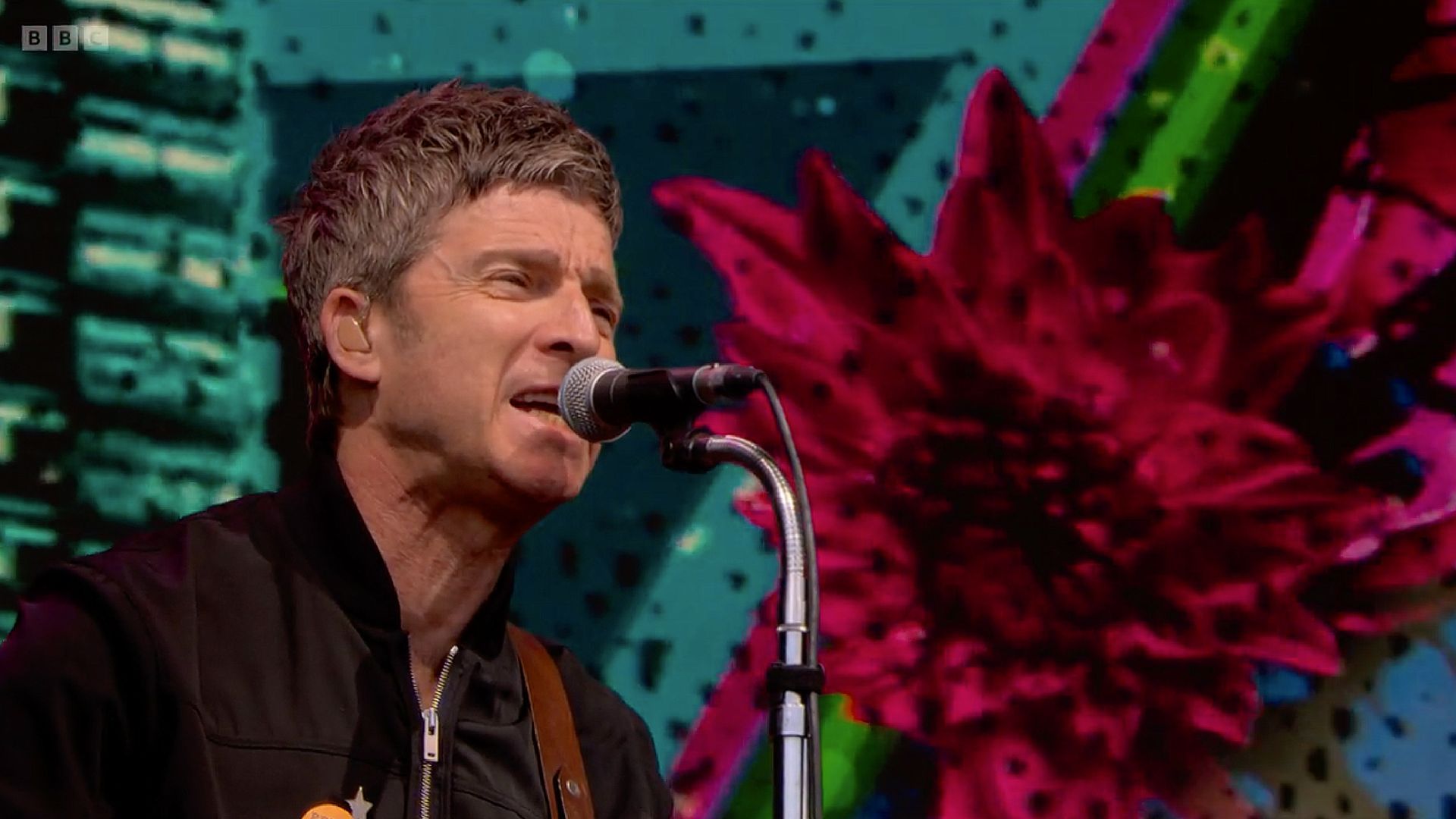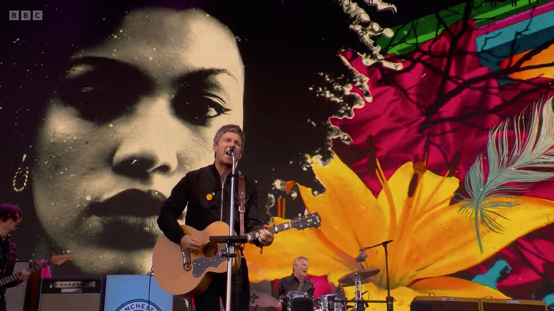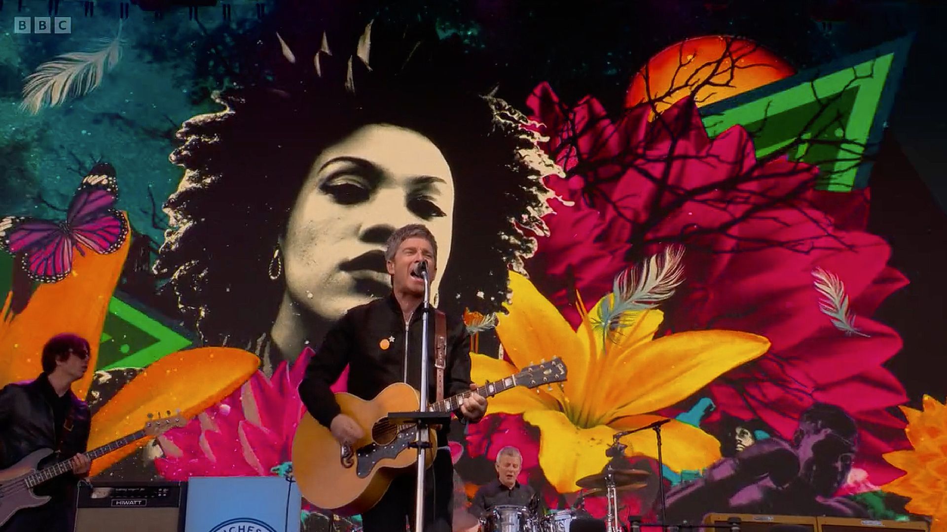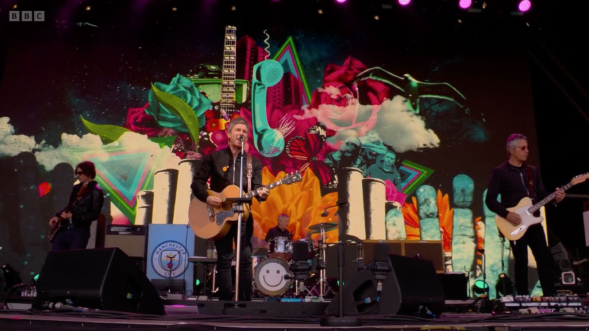 Video screen for Noel Gallagher's High Flying Birds Glastonbury 50th anniversary set on the main pyramid stage. Using a heavy mix of rotoscoped footage, crushed and punked up with analogue mark-marking against ultra punchy neon colours. Projected on Glastonbury's epic 18m x 10m screen. 1 of 8 videos.